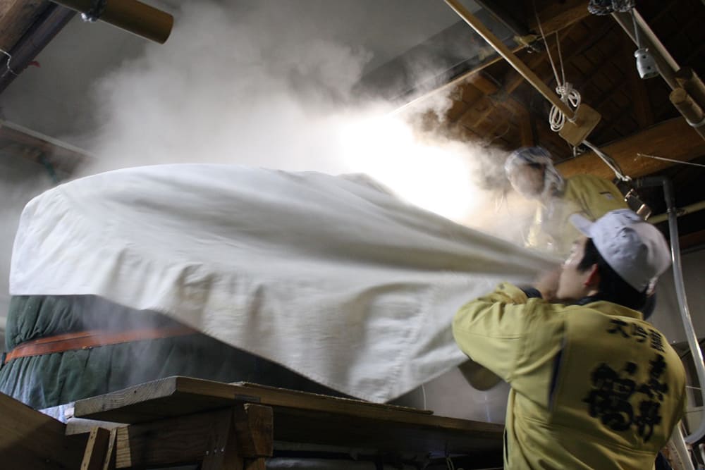 Kenya Kudo, who became a toji (sake brewer) at the Obata Sake Brewery in 2000, stays overnight at the brewery during the winter in order to prepare the brew in the early morning, when the air is coldest. Most other breweries have abandoned this practice to increase efficiency. This shows the commitment of Kudo and other craftsmen at the Obata Sake Brewery to produce quality sake and stay faithful to the brewery’s handmade methods.