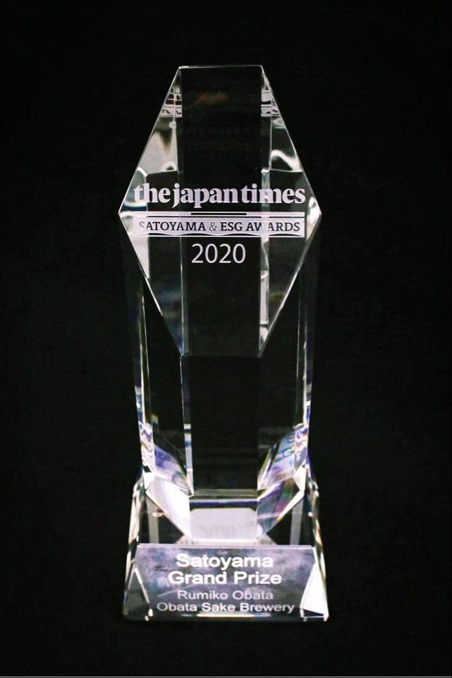 The Obata Sake Brewery was awarded the Grand Prize in the second Japan Times Satoyama & ESG Awards 2020 in the category of Satoyama (rural forests and mountains maintained by local residents) for its extensive contributions to society. This award was established by The Japan Times to make its own contribution by highlighting companies, organizations and individuals who have taken outstanding initiatives in satoyama and ESG (environmental, social and governance) activities and by widely sharing these successful cases in Japan and abroad.